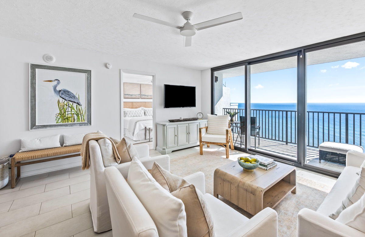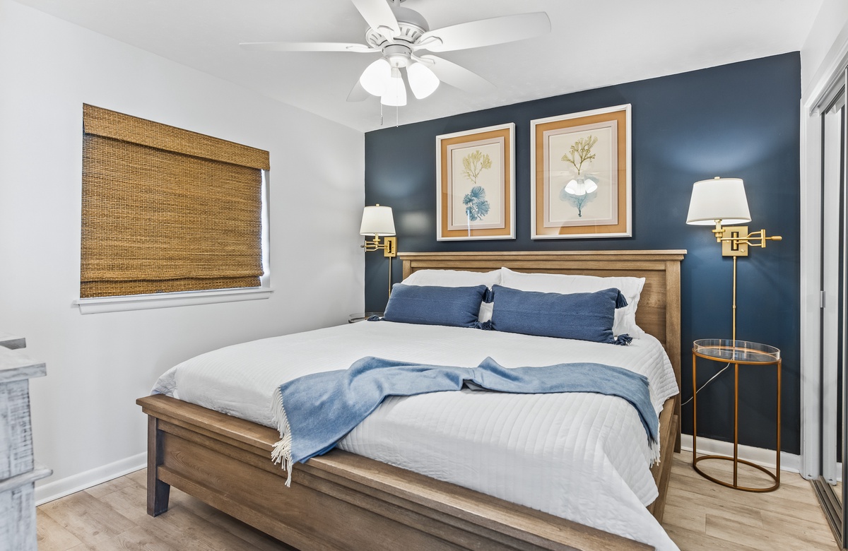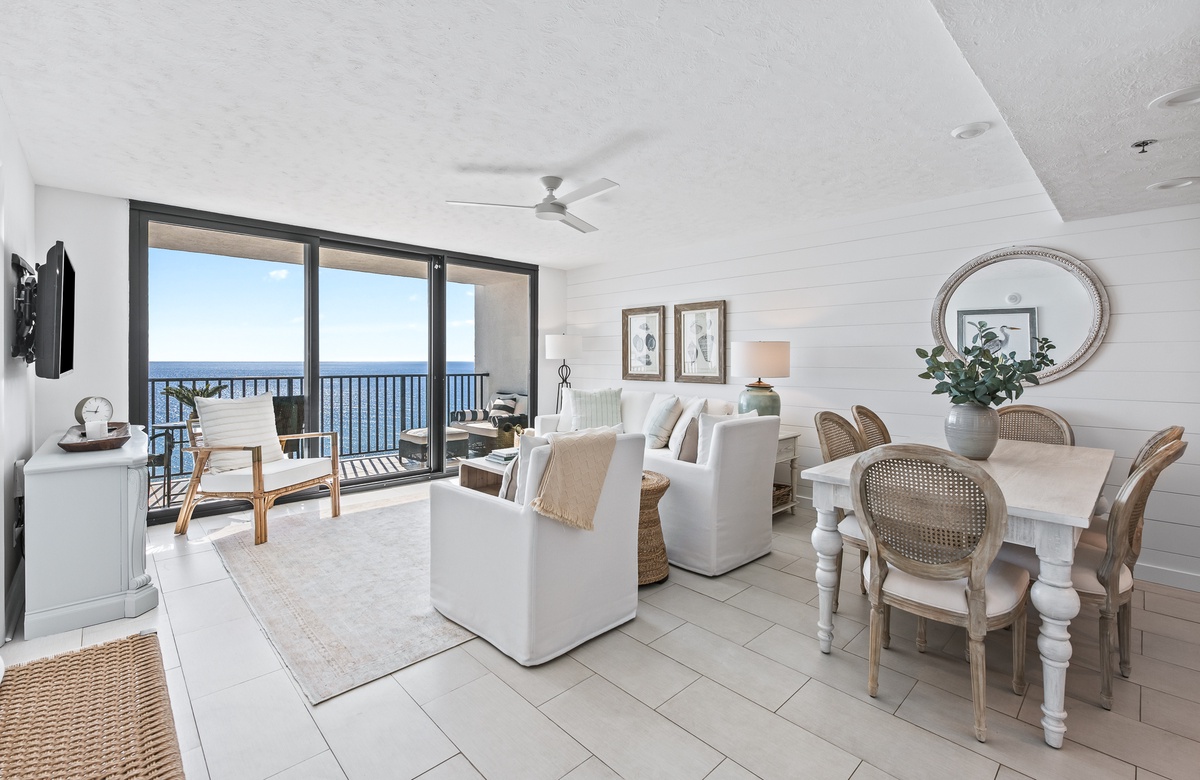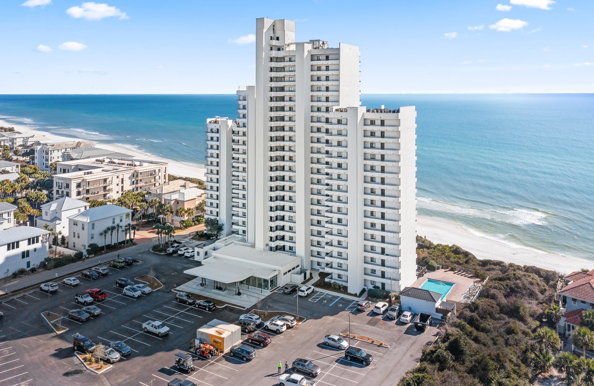 This two-bedroom, two-bathroom condo is located in One Seagrove Place directly on County Hwy 30A, in the heart of Seagrove Beach. The views of white sandy beaches and emerald green waters will relax and recharge your soul. Beach access is right outside your back door. Two parking spaces (second spot when available) are provided on-site for both cars and bikes. Restaurants and shopping are steps away. Your views of the Gulf are unencumbered with wall-to-wall sliding glass doors in the living area and primary bedroom. You can greet the morning on your balcony and enjoy our spectacular sunsets every evening.