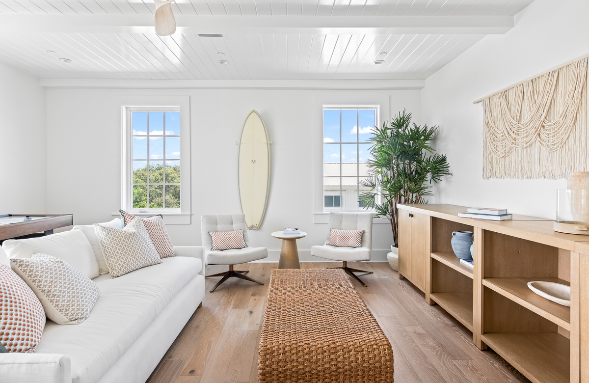 On 30A in Inlet Beach, Florida, "Getaway on Green" combines fun for the whole family with luxurious accents and conveniences, comfortably sleeping 26 guests in 9 bedrooms and 7 bathrooms. Enjoy the serene quietness this property offers with a short walk to world-famous 30A beach towns or private white sandy beaches. This is a brand-new beach house that is ready to spoil guests!