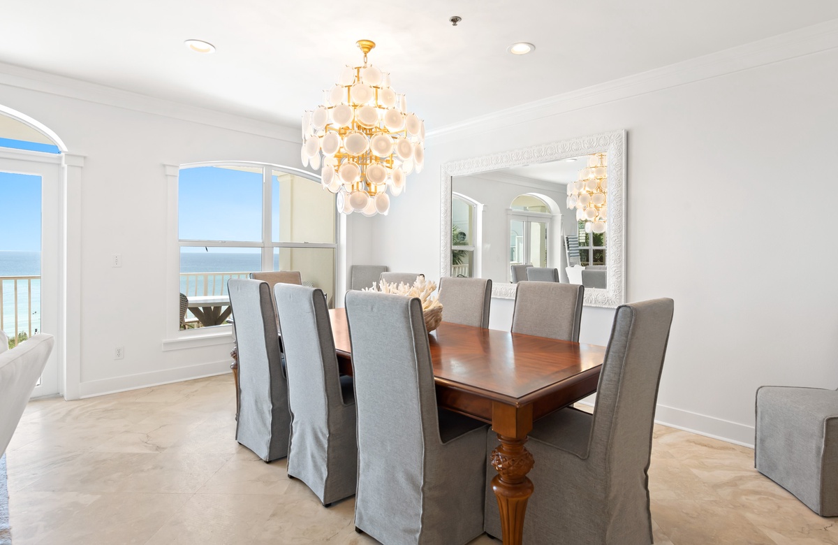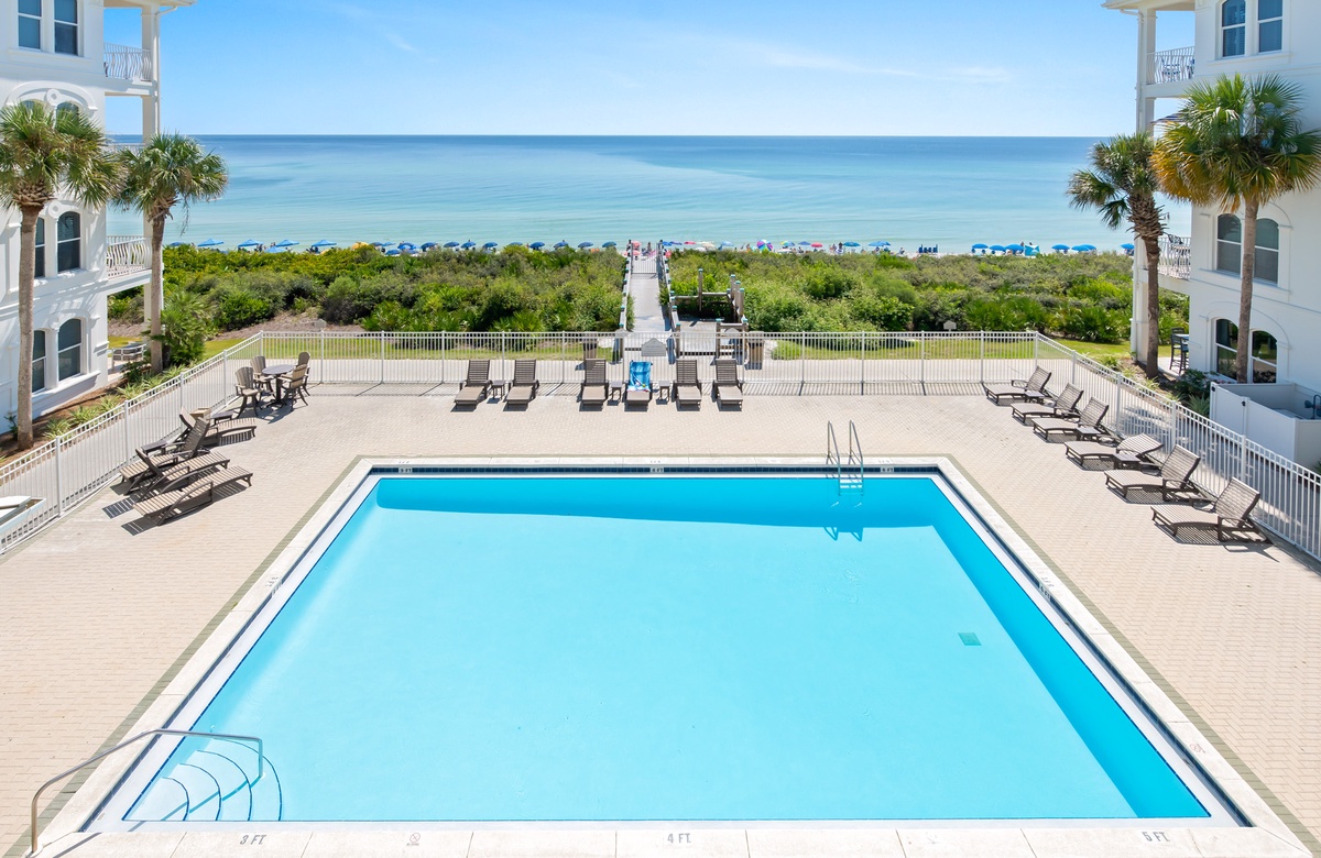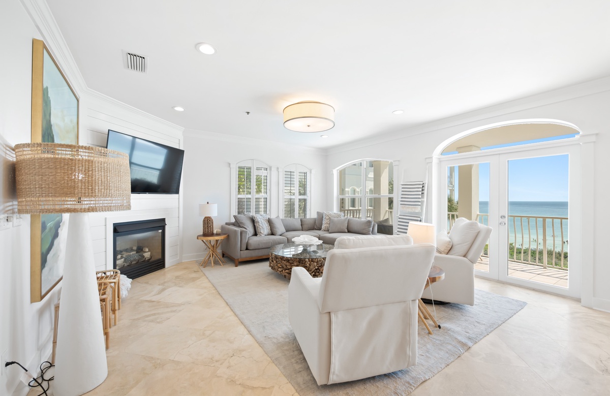 Step into a dream villa vacation that is quietly tucked away in a direct access beach-front community south of 30A at Sunset Beach! “Paradise Villa” offers quiet, breathtaking views, with direct access to the beach and a heated pool that are all within view of your balcony. Merely steps from the attraction-packed communities of Rosemary, Alys, and Seacrest Beach, you can fully immerse yourself in local restaurants, quaint shops, farmers markets, and on-going community events. Many windows fill the space of this third-floor, open-concept condo with natural light to create the perfect atmosphere for sitting by the fire on cool winter evenings or watching the long sunset kiss the horizon. You will have comfortable seating and plenty of space to share those moments with your loved ones.
